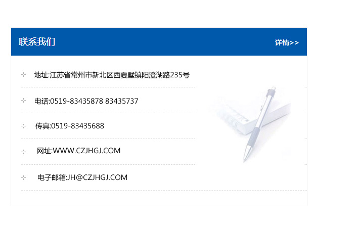 地址:常州市新北區友邦商務大廈1幢16、17層  電話:0519-85101652  傳真:0519-85112595  郵編:213022  網址:www.cz-jiayue_cn.dgnaming.com  郵箱:xiajifengaa@163.com